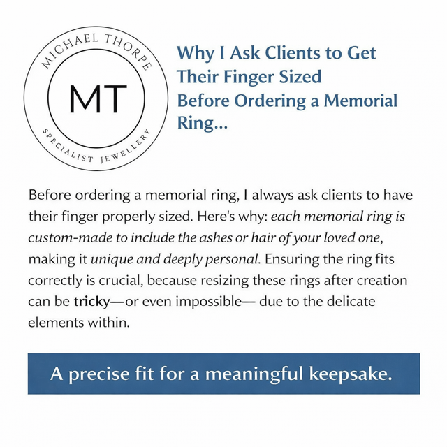 We do have other workshop services that can offer things such as scratch removal and polishing, conversion to existing client supplied jewellery, minor repairs such as soldering and of course bespoke work for other jewellery projects other than memorial work. The best thing to do is reach out to me to see if we can help you (subject to on going commitments within the workshop).
